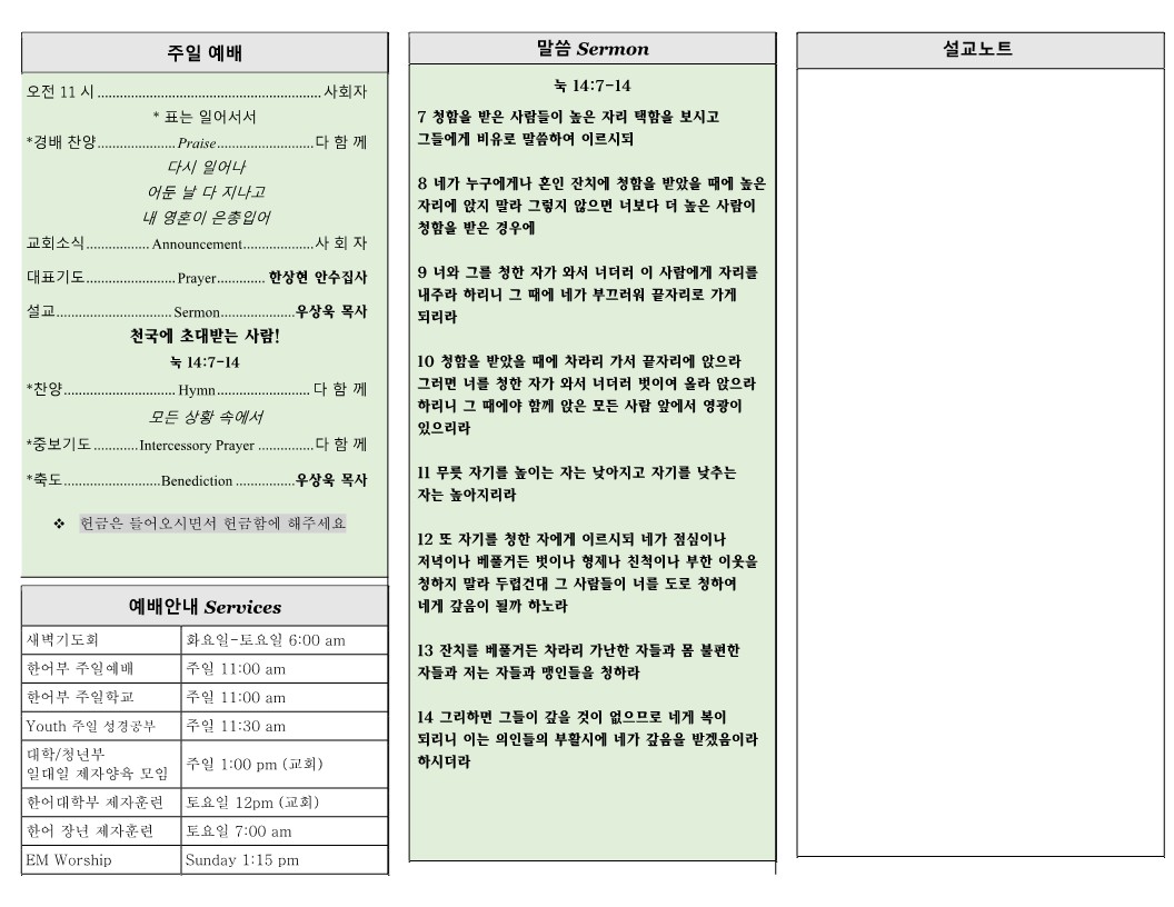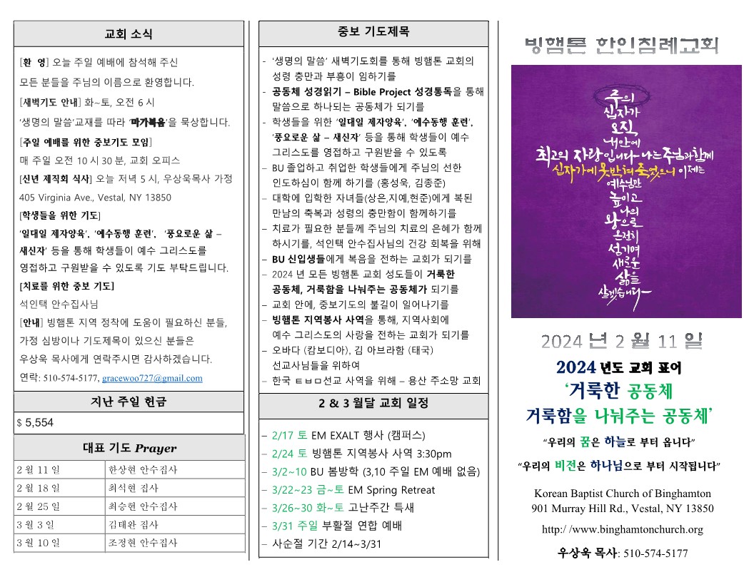 2월 11일 (주일) 교회 주보 날짜 : 2024.02.10 조회수 : 1806 목록 본문 2월 11일 (주일) 교회 주보 이전글2월 18일 (주일) 교회 주보 24.02.17 다음글2월 4일 (주일) 교회 주보 24.02.03 댓글 0 댓글목록 등록된 댓글이 없습니다. 목록