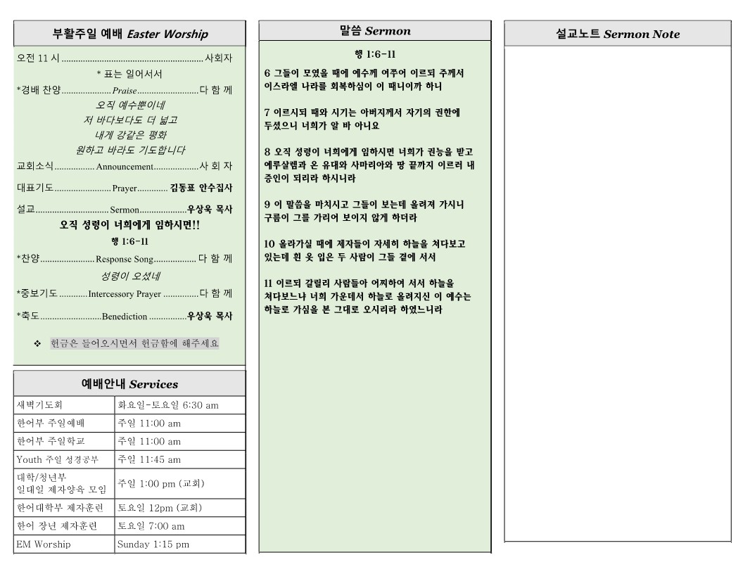 4월 21일 (주일) 교회 주보 날짜 : 2024.04.21 조회수 : 1940 목록 본문 4월 21일 (주일) 교회 주보 이전글4월 28일 (주일) 교회 주보 24.04.26 다음글4월 14일 (주일) 교회 주보 24.04.12 댓글 0 댓글목록 등록된 댓글이 없습니다. 목록