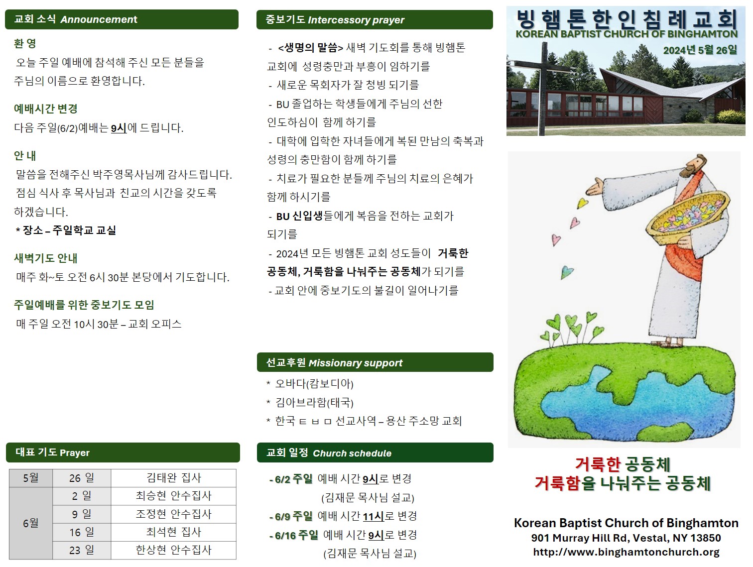 5월 26일 (주일) 교회 주보 날짜 : 2024.05.24 조회수 : 1392 목록 본문 5월 26일 (주일) 교회 주보 이전글6월 2일 (주일) 교회 주보 24.05.30 다음글5월 19일 (주일) 교회 주보 24.05.15 댓글 0 댓글목록 등록된 댓글이 없습니다. 목록