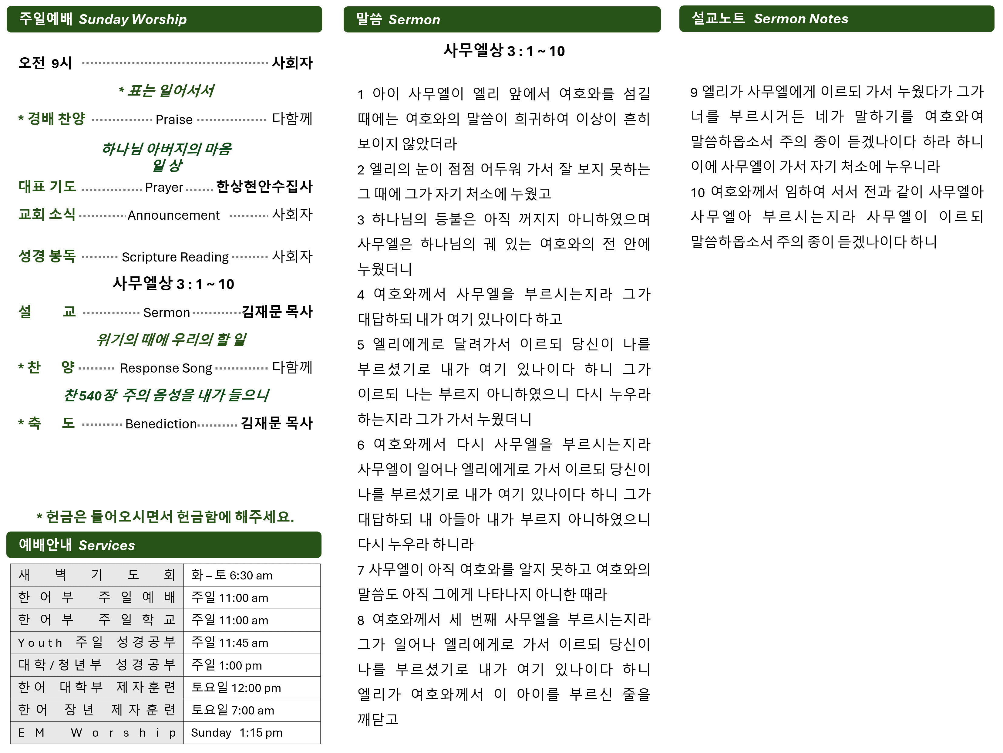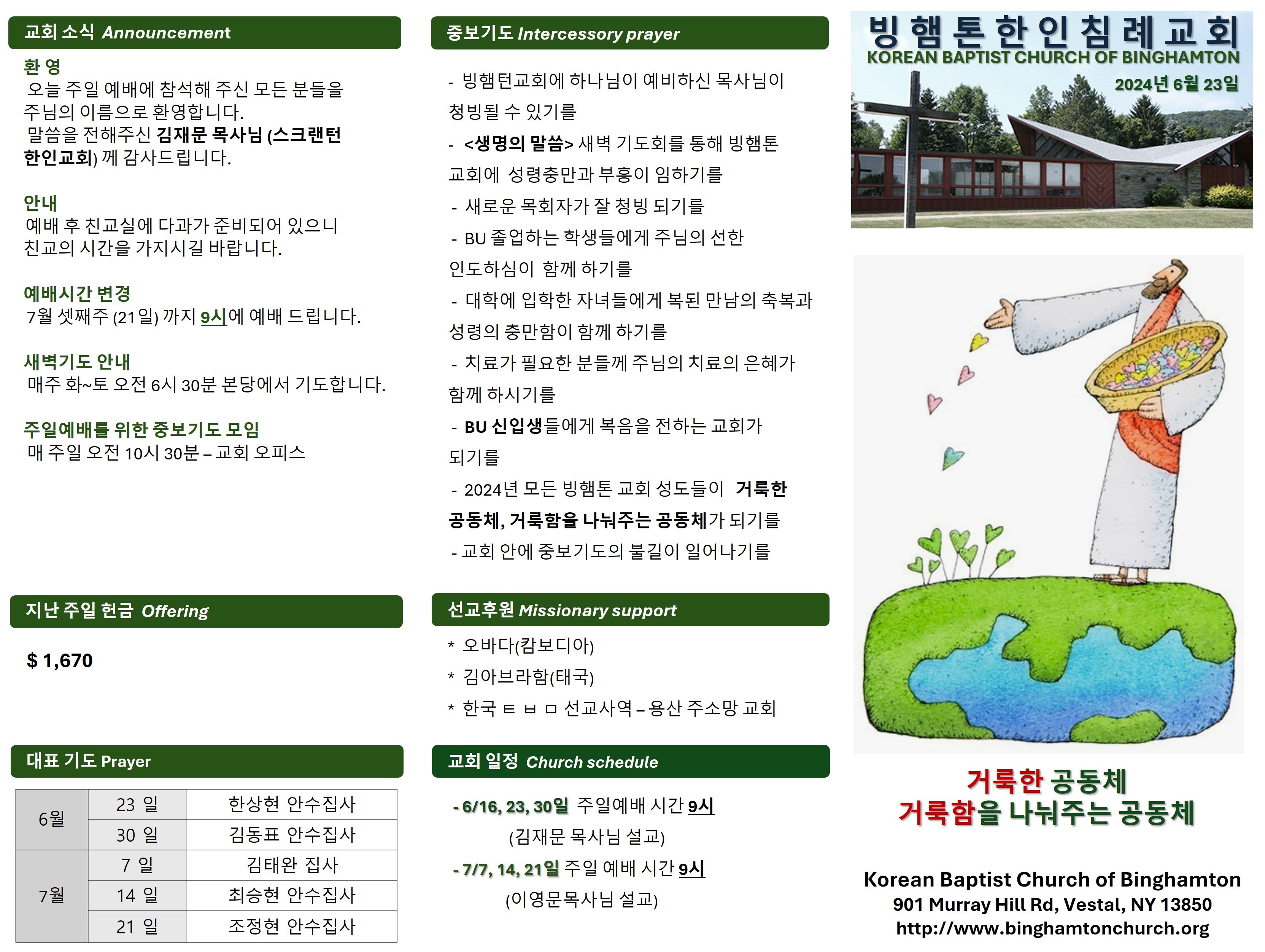 6월 23일 (주일) 교회 주보 날짜 : 2024.06.21 조회수 : 617 목록 본문 6월 23일 (주일) 교회 주보 이전글6월 30일 (주일) 교회 주보 24.06.28 다음글6월 16일 (주일) 교회 주보 24.06.13 댓글 0 댓글목록 등록된 댓글이 없습니다. 목록