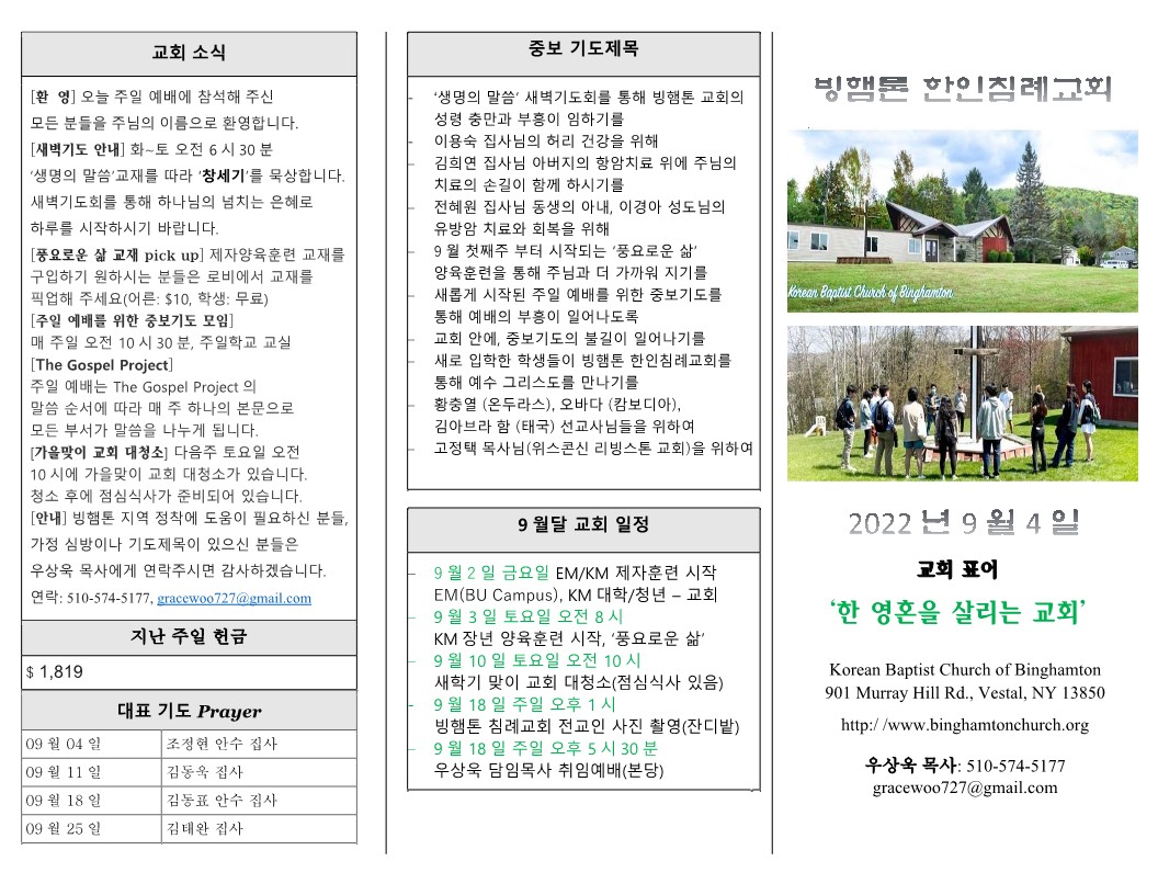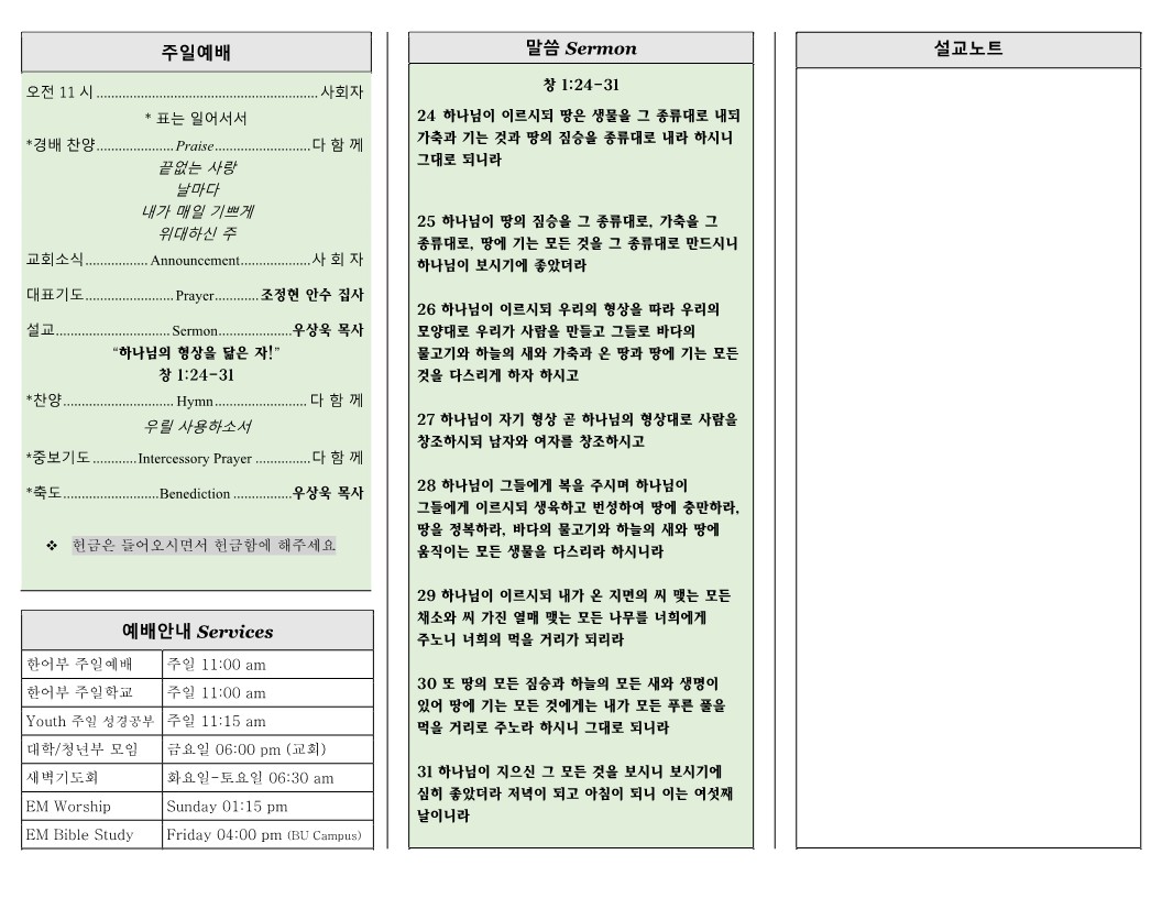 9월 4일 (주일) 교회 주보 날짜 : 2022.09.10 조회수 : 3377 목록 본문 9월 4일 (주일) 교회 주보 이전글9월 11일 (주일) 교회 주보 22.09.10 다음글8월 21일 (주일) 교회 주보 22.09.07 댓글 0 댓글목록 등록된 댓글이 없습니다. 목록
