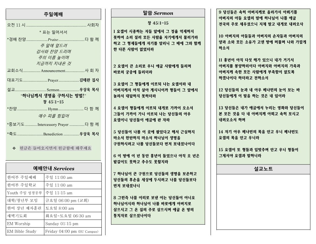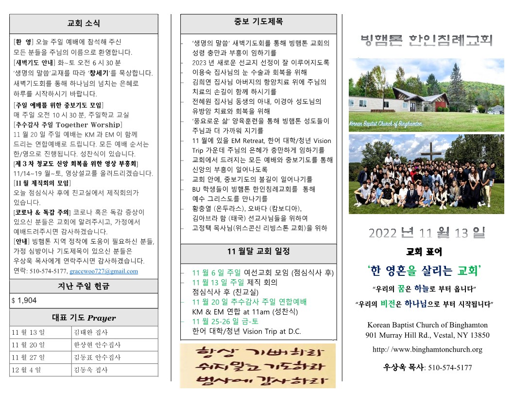 11월 13일 (주일) 교회 주보 날짜 : 2022.11.13 조회수 : 3584 목록 본문 11월 13일 (주일) 교회 주보 이전글11월 20일 (추수감사 주일) 교회 주보 22.11.19 다음글11월 6일 (주일) 교회 주보 22.11.06 댓글 0 댓글목록 등록된 댓글이 없습니다. 목록