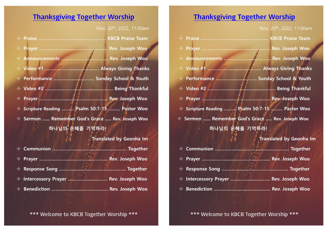 11월 20일 (추수감사 주일) 교회 주보 날짜 : 2022.11.19 조회수 : 3643 목록 본문 11월 20일 (추수감사 주일) 교회 주보 이전글11월 27일 (주일) 교회 주보 22.12.03 다음글11월 13일 (주일) 교회 주보 22.11.13 댓글 0 댓글목록 등록된 댓글이 없습니다. 목록