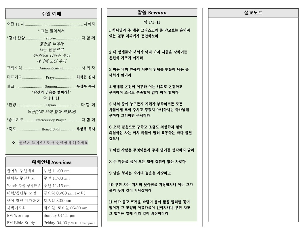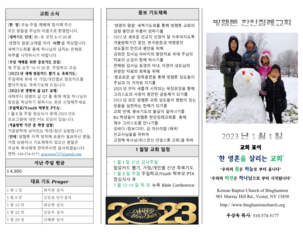 1월 1일 (신년 주일) 교회 주보 날짜 : 2023.01.01 조회수 : 2672 목록 본문 1월 1일 (신년 주일) 교회 주보 이전글1월 8일 (주일) 교회 주보 23.01.09 다음글12월 25일 (성탄 주일) 교회 주보 22.12.25 댓글 0 댓글목록 등록된 댓글이 없습니다. 목록