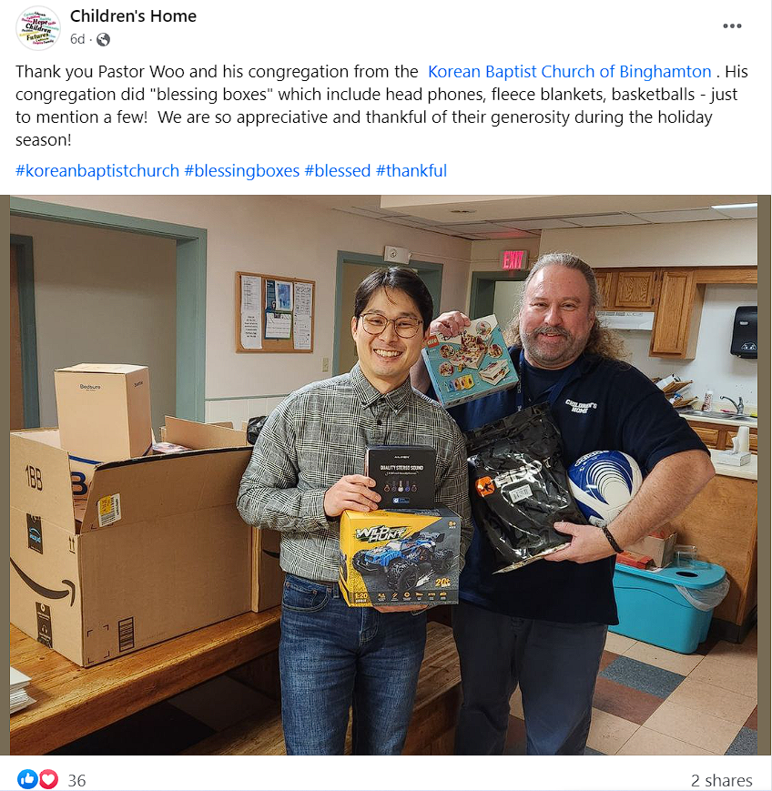 연말 불우이웃 사역 - Children's Home 페이스북 소식