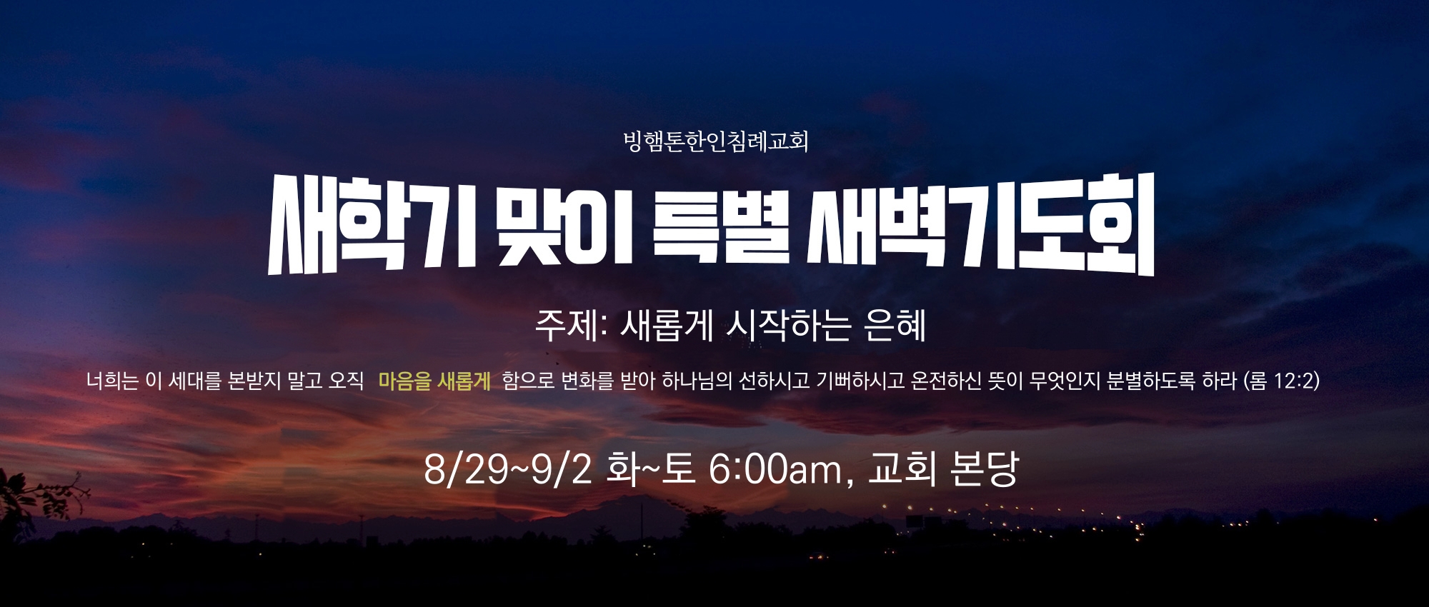 새학기를 맞아, 모든 학생들과 성도님들이 함께하는 특별새벽기도회 입니다.