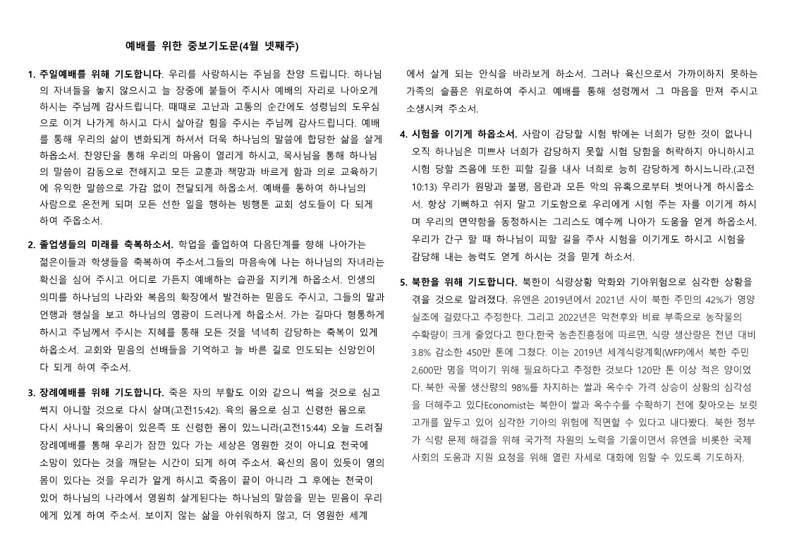 예배를 위한 중보기도문 (4월 넷째주) 날짜 : 2023.04.23 조회수 : 1564 목록 본문 예배를 위한 중보기도문 (4월 넷째주) 이전글예배를 위한 중보기도문 (4월 마지막주) 23.04.30 다음글예배를 위한 중보기도문 (4월 셋째주) 23.04.16 댓글 0 댓글목록 등록된 댓글이 없습니다. 목록