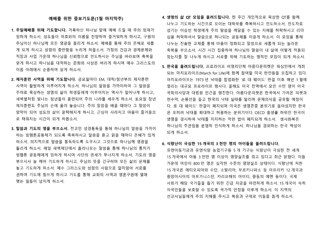 - 다음글예배를 위한 중보기도문(1월 넷째주) 23.01.21
