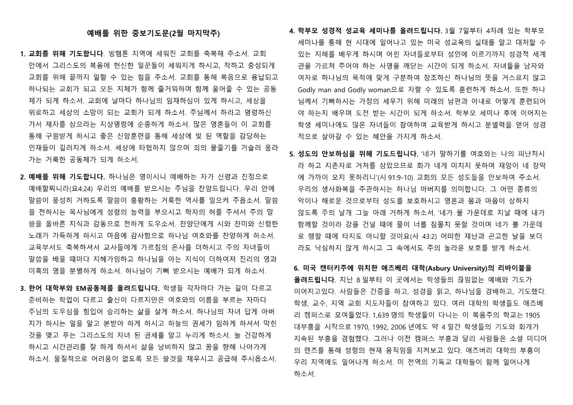 예배를 위한 중보기도문(2월 마지막주) 날짜 : 2023.02.26 조회수 : 1800 목록 본문 예배를 위한 중보기도문(2월 마지막주) 이전글예배를 위한 중보기도문(3월 첫째주) 23.03.05 다음글예배를 위한 중보기도문(2월 둘째주) 23.02.11 댓글 0 댓글목록 등록된 댓글이 없습니다. 목록